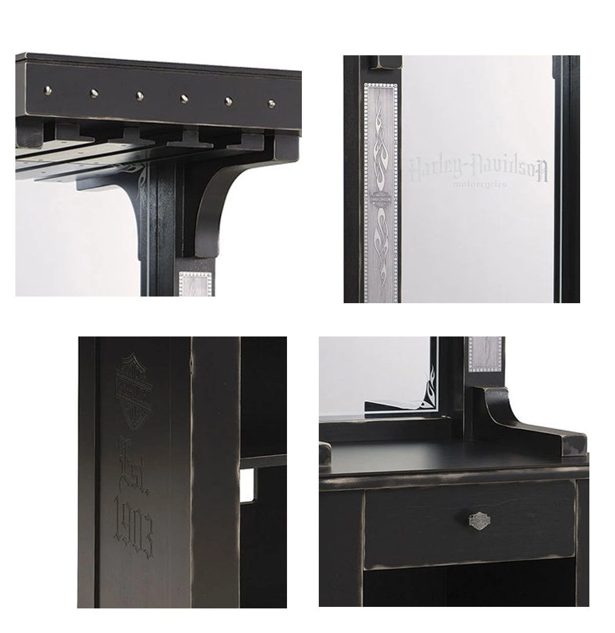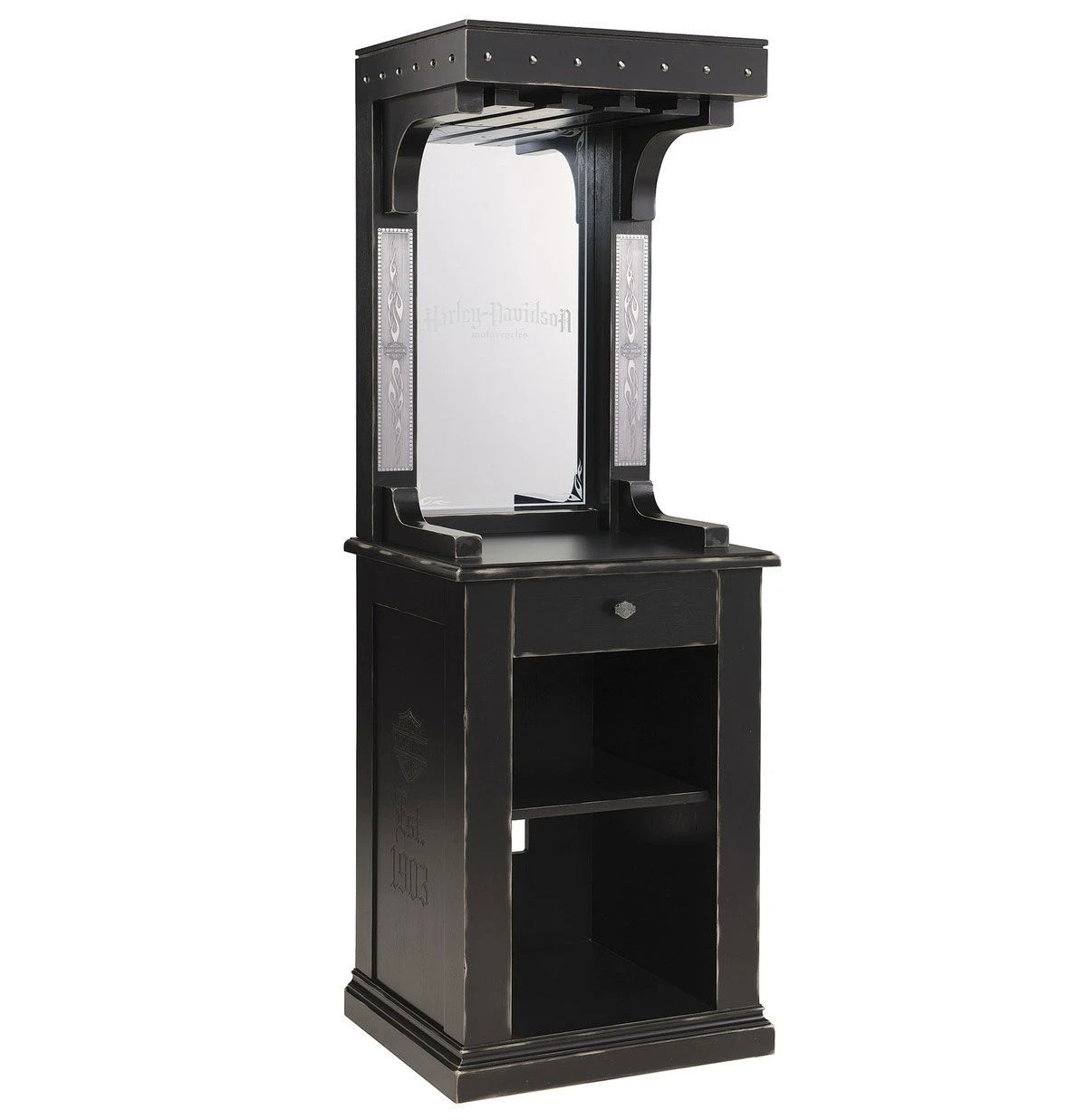 Harley-Davidson Bar and Shield Flames Wine Cabinet Black Vintage