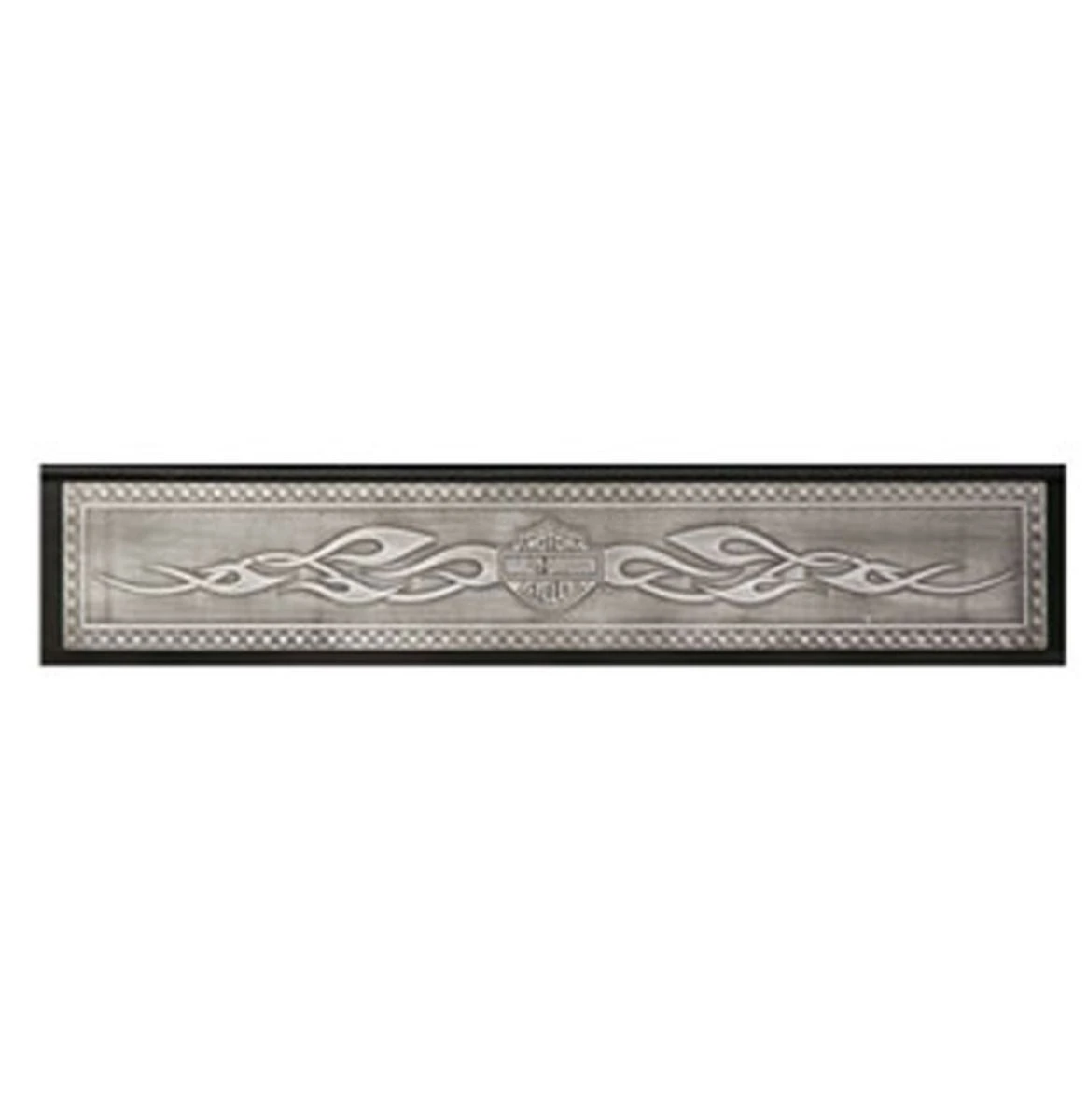 The H-D® Bar & Shield Flames Pub Table crafted from North American hardwood is tasteful and stylish. Embossed Bar & Shield in the center of the table surrounded by a ring of beautiful hardwood inlay flames creates a subtle, yet striking combination. Hand set metal studs and custom etched Bar & Shield flame metal plates alternate around the apron. Pedestal base also features cast Bar & Shield medallions. The Heritage Brown hand rubbed finish is accentuated with antique brass accents. Table sold individually or as a set with Bar Stools. Easy assembly required.