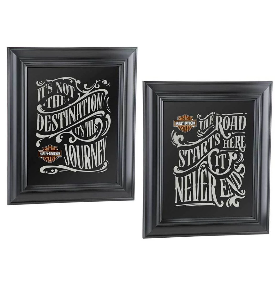 Harley-Davidson® Destination Mirror Set, HDL-15231. Set of two mirrors feature Harley mottos and Bar & Shield logo. Mirror 1: “It’s Not The Destination It’s The Journey”. Mirror 2: “The Road Starts Here It Never Ends”. Dimensions: 27 x 32 cm