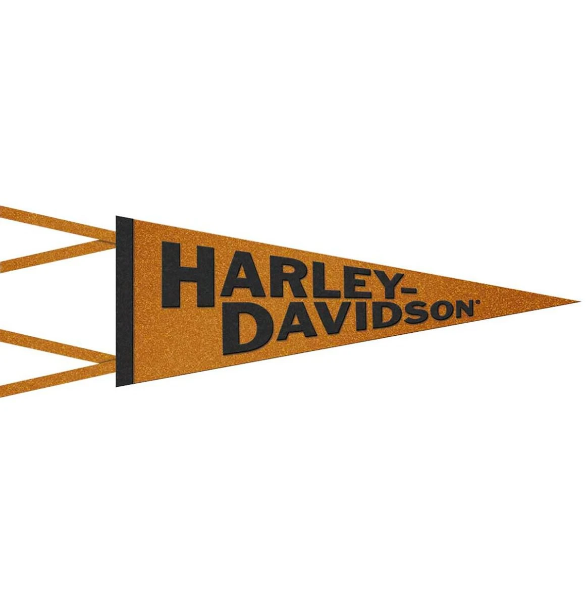 Nostalgic felt pennant with applique Harley-Davidson logo on front. Dimensions: 42″ W x 15″ H / 107 x 38 cm