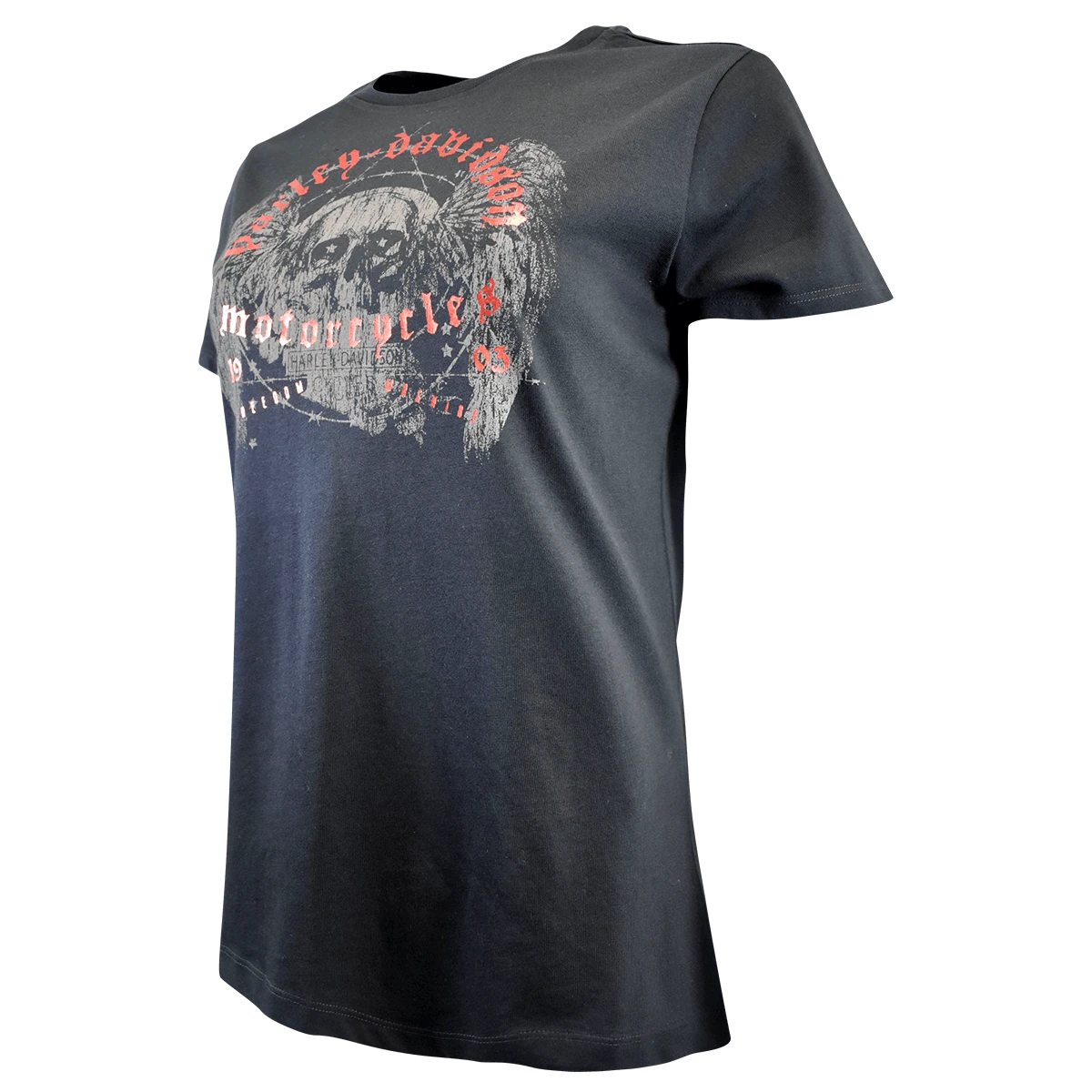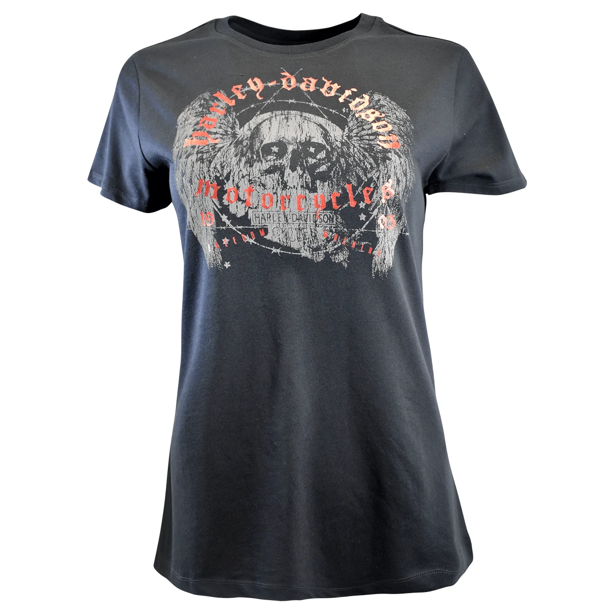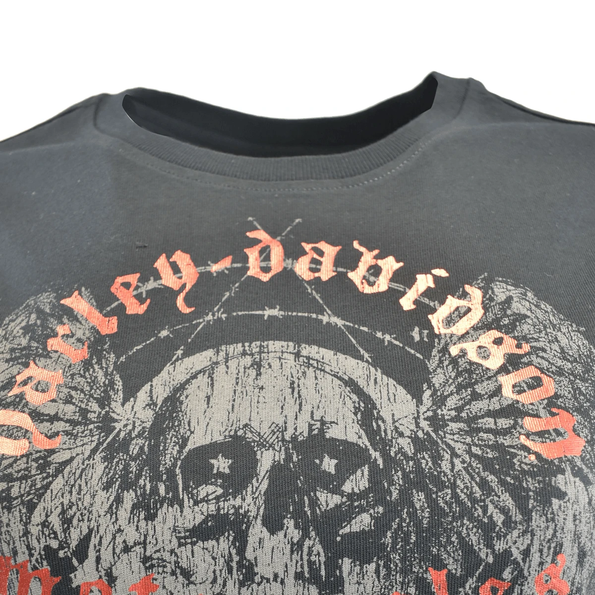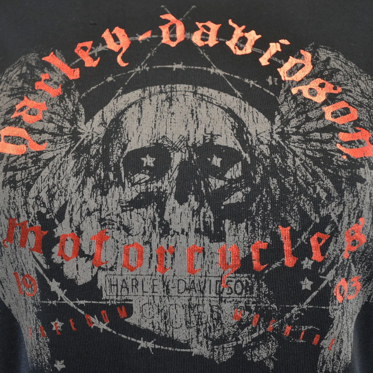 - Harley Davidson Red Gothiic Letters & Skull Print on Chest